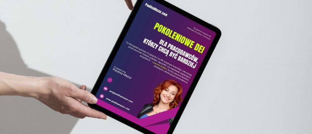 Zapraszam Cię do wykonania samodzielnego audytu EB i rekrutacji pod kątem pokoleniowego DEI. Z myślą o pracodawcach, którzy chcą skuteczniej przyciągać i zatrzymywać talenty z każdego pokolenia opracowałam listę 30 pytań kontrolnych. Dzięki nim dowiesz się m.in.: